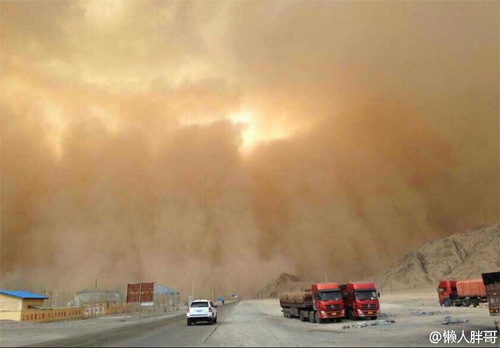 3月31日18時左右,一個巨大的沙塵團在青海省格爾木市形成,巨型沙塵暴整個過程大約持續半個小時。樓房在沙塵暴面前顯得非常渺小,仿佛要被吞沒。
